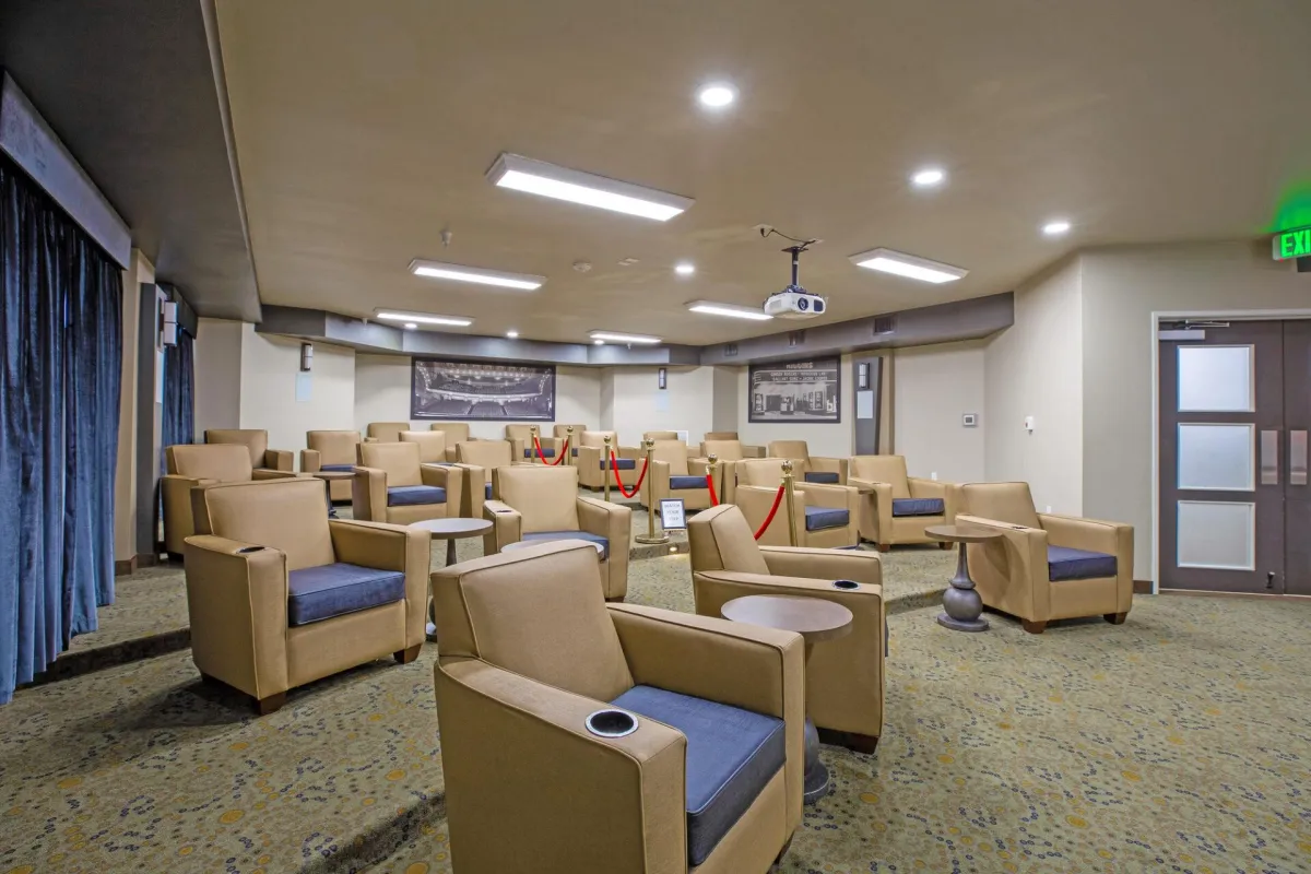 Exercise center, library, billiard room, computer center, hobby and crafts room, movie theater, bowling, and gardens
