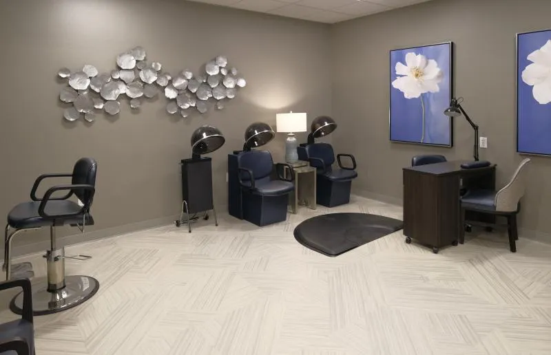 On-site barber shop and spa-like salon