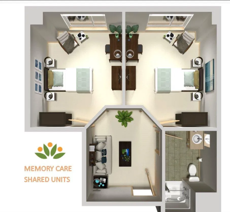 Memory care suites with private outdoor patio