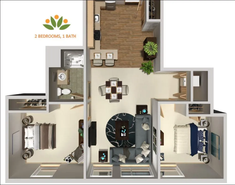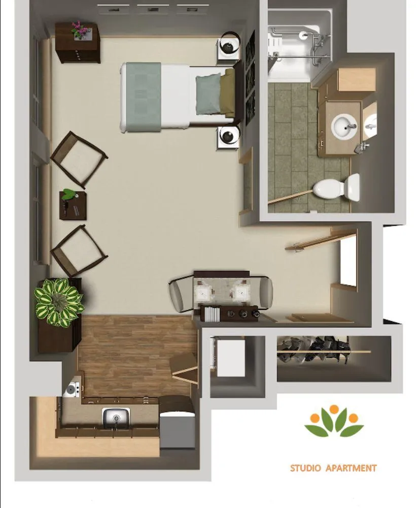 Mix of studio, one-bedroom, and two-bedroom private and semi-private apartments
